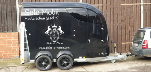 Die Pferde stehen 30 - 45 min. im Anhänger und nehmen die vernebelte Sole über die Nüstern und die Haut auf.